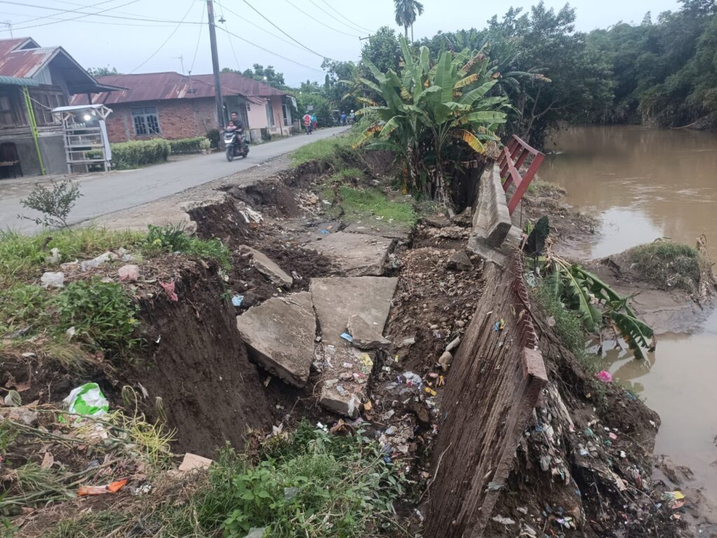 HAMPARAN PERAK – Gerusan besar-besaran air sungai Belawan bakal hilangkan Jalan Desa Klambir Lima Kampung, Kecamatan Hamparan Perak, Kabupaten Deli Serdang, Senin (9/12/2024).