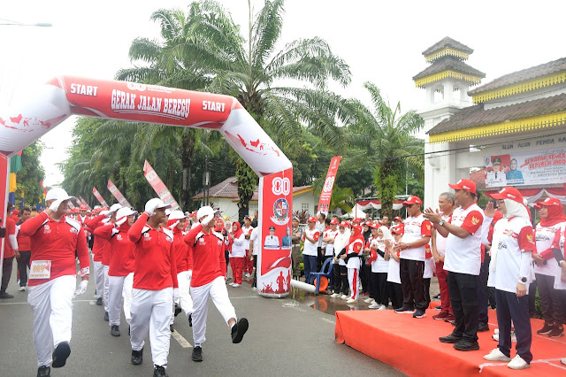 Gerak Jalan Beregu dan Senam Sehat dalam menyambut Hari Ulang Tahun (HUT) ke-80 Kemerdekaan Republik Indonesia di Alun-Alun Pemerintah Kabupaten (Pemkab) Deli Serdang, Senin, 11 Agustus 2025, terlihat begitu semarak.