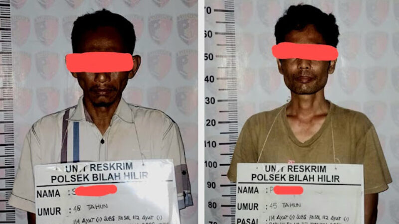 Tim Unit Reskrim Polsek Bilah Hilir Resor Labuhanbatu amankan dua orang pria terduga pelaku penyalahgunaan narkotika diwilayah Kecamatan Pangkatan, Kabupaten Labuhanbatu, Sumut. Kedua pelaku berhasil diamankan petugas pada, Minggu 27 Juli 2025 di Dusun II, Desa Sidorukun, Pangkatan.