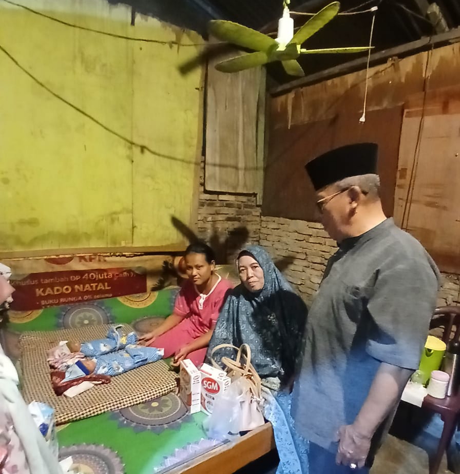 Setelah itu, kunjungan berikutnya dilanjutkan ke Jalan Veteran Pasar VIII Dusun VA guna membesuk warga yang melahirkan bayi kembar prematur.