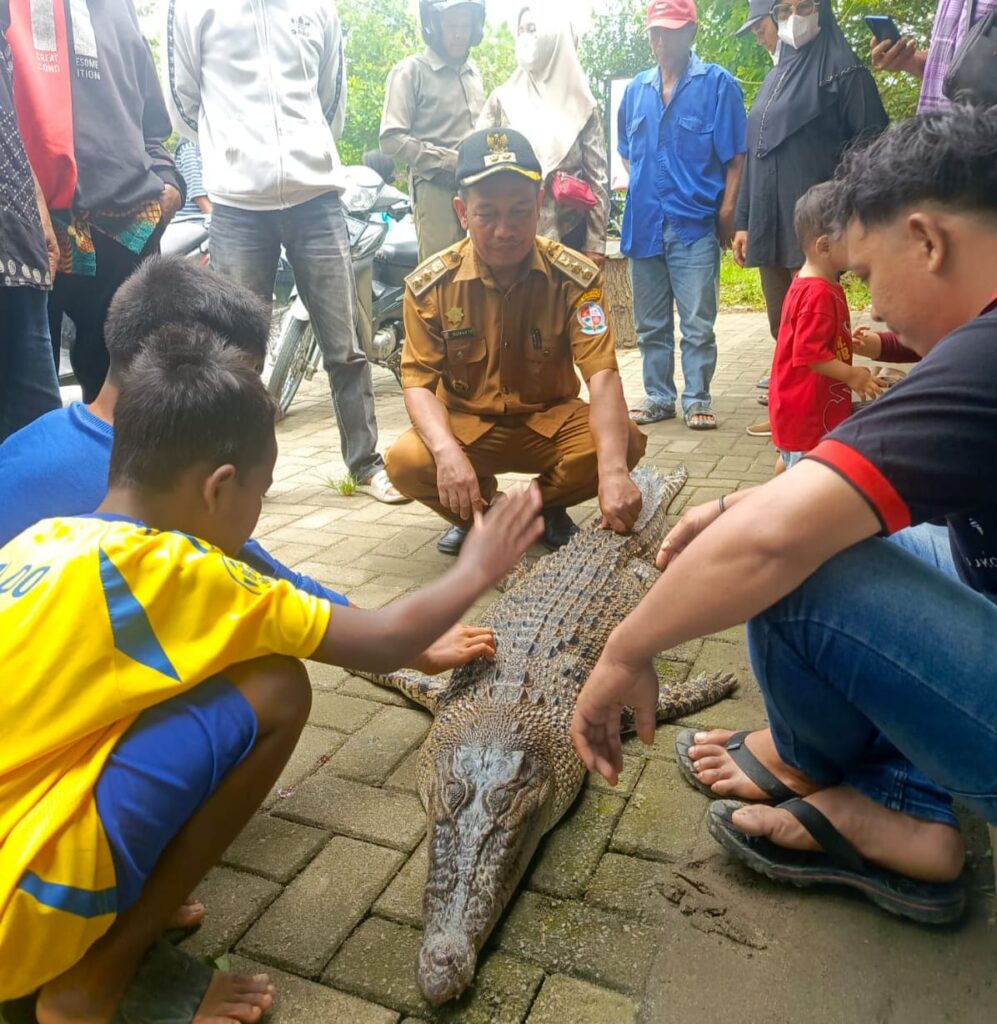 Menurut warga, dilokasi tersebut banyak terlihat buaya. Saat ditemukan ada 2 ekor Buaya tersangkut di jaring. Namun yang 1 ekor lolos dan yang 1 ekor sudah dalam keadaan mati, ucap Kades Sunarto.