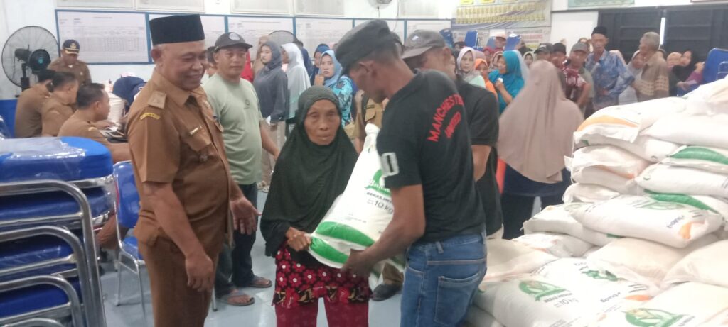 Pemerintah Desa Paya Bakung, Kecamatan Hamparan Perak, Kabupaten Deli Serdang, Sumatera Utara, saluran bantuan pangan beras kepada masyarakat, Senin 28/7/2025.