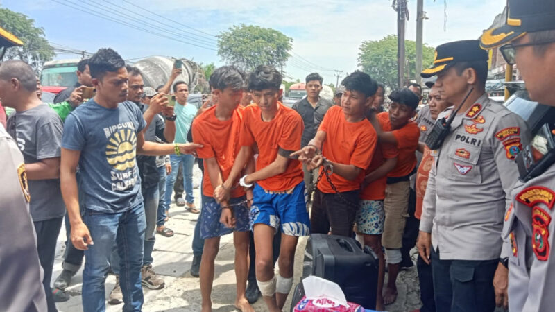 “TSK membawa sajam, ditaruh sajamnya dengan diapit. Lalu dihentikan anggota, diperiksa. Setelah dikonfirmasi dan dicocokan dengan rekaman CCTV, kita meyakini dia bagian dari pelaku yang melakukan begal di Binjai,” jelas Gidion didampingi Kapolsek Sunggal, Kompol Bambang G Hutabarat bersama Kanit Reskrim AKP Budiman Simanjuntak.