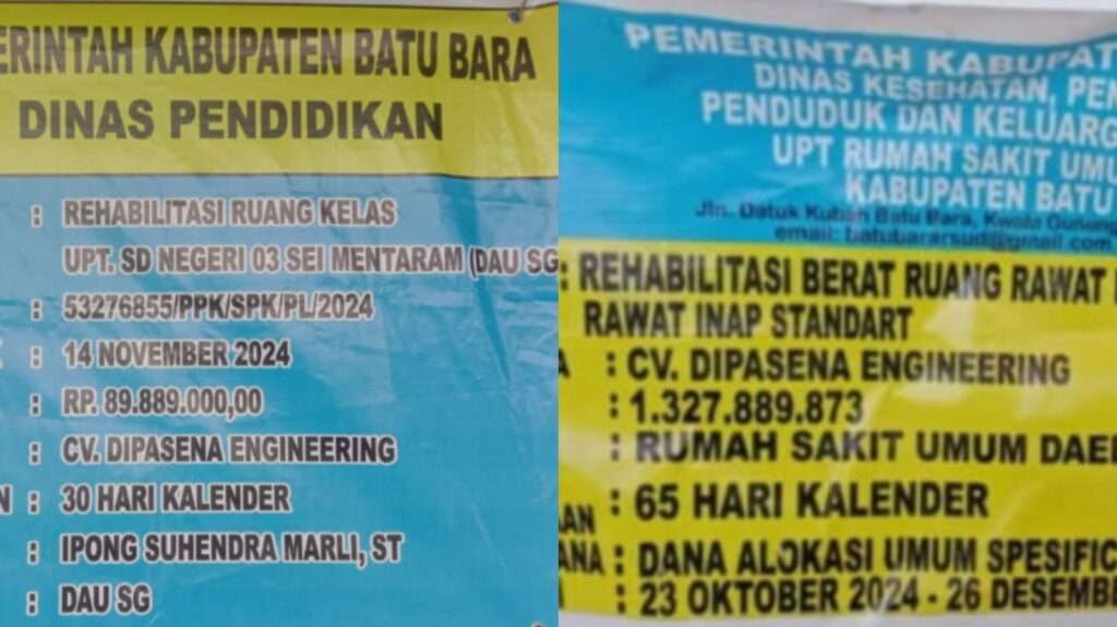 Begitu juga dengan rehabilitasi ruang kelas UPT. SDN 03 Sei Mentaram senilai Rp. 89.889.000.00 dengan CV yang sama yaitu DIPASENA ENGINEERING, bebernya.