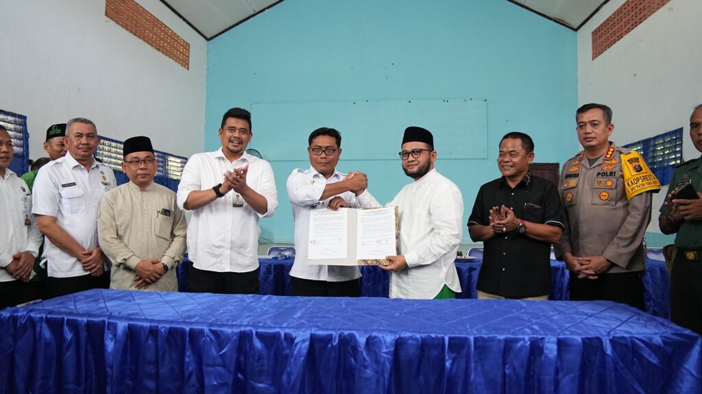 “Berikutnya, Al Washliyah mengajukan untuk mendapatkan bangunan di atas tanah Al Washliyah itu sendiri, yang akan digunakan juga untuk pendidikan. Yang berubah hanya yang mengelolanya. Jadi, sama-sama untuk memajukan sektor pendidikan. Memastikan anak-anak kita mendapatkan fasilitas pendidikan di tingkat SMP. Jadi, jangan ada persepsi gedung ini kosong tidak digunakan. Tinggal proses belajar mengajarnya dibuat shift-shiftan,” imbuh Gubsu.