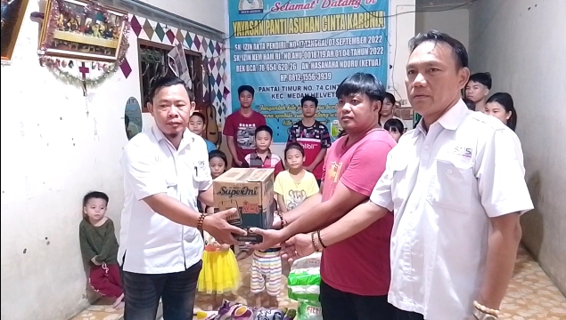 Jelang Nataru, Serikat Media Siber Indonesia (SMSI) Kota Medan, melakukan Safari Natal 2024 dengan melakukan Bakti Sosial (baksos) ke Yayasan Panti Asuhan Cinta Karunia, Jalan Pantai Timur No.74 Kelurahan Cinta Damai, Kecamatan Medan Helvetia, pukul 10.00 WIB dan Panti Asuhan Jembatan Harapan Jalan Pelita VI No.70 Kelurahan Sidorame Timur, Kecamatan Medan Perjuangan, pukul 11.30 WIB, Kamis (19/12/2024)